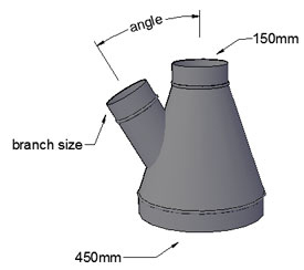 Ventilation Ducting  | Fabricated Round Fittings | Reducing T Pieces | 450mm LE |  150mm SE